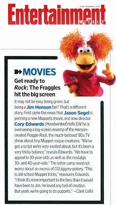 Well it ain’t much, but it’s probably worth blogging about. The Fraggle Rock movie got a nice little write-up in this week’s Entertainment Weekly.