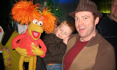 Until there is more to say about the movie, I can at least report on the stranger-than-fiction clash of culture that I attended last night. Quite simply, it was a “Fraggle Rock Party” hosted by upscale fashion label Dr. Romanelli (I went to him last year when I threw my back out — he’s good). There was a DJ playing Fraggle jams, there were T-shirts that cost too much, and there was Fraggle-shaped jewelry. Oh the glamour! The stars! Kevin Sorbo! Jennifer Love Hewitt! Jamie Kennedy! Okay… that was about it. Unless you count RED FRAGGLE, who was really the chick everyone was there to see.